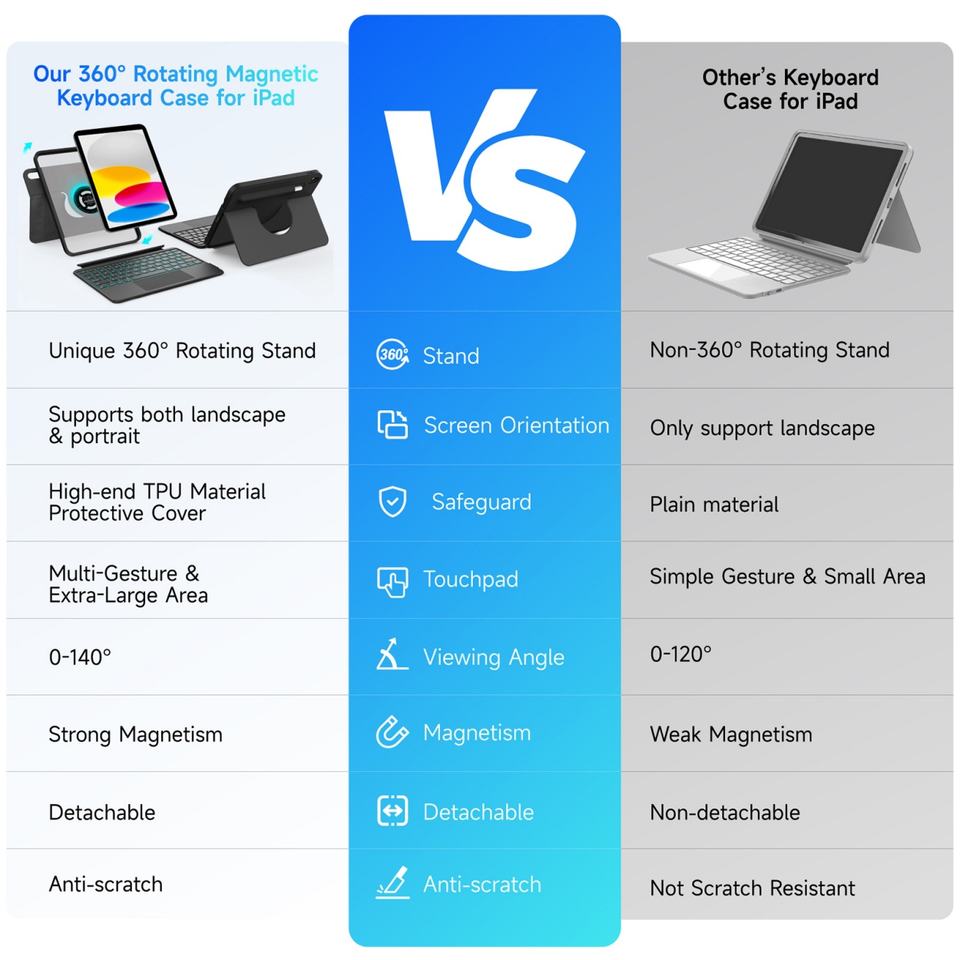 Clavier avec étui pour iPad, vente flash d'usine, clavier rotatif avec rétroéclairage 7-RGB, grand pavé tactile précis pour iPad 10e et 11e génération, nouveau produit