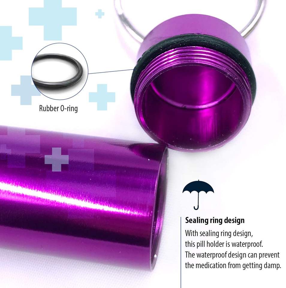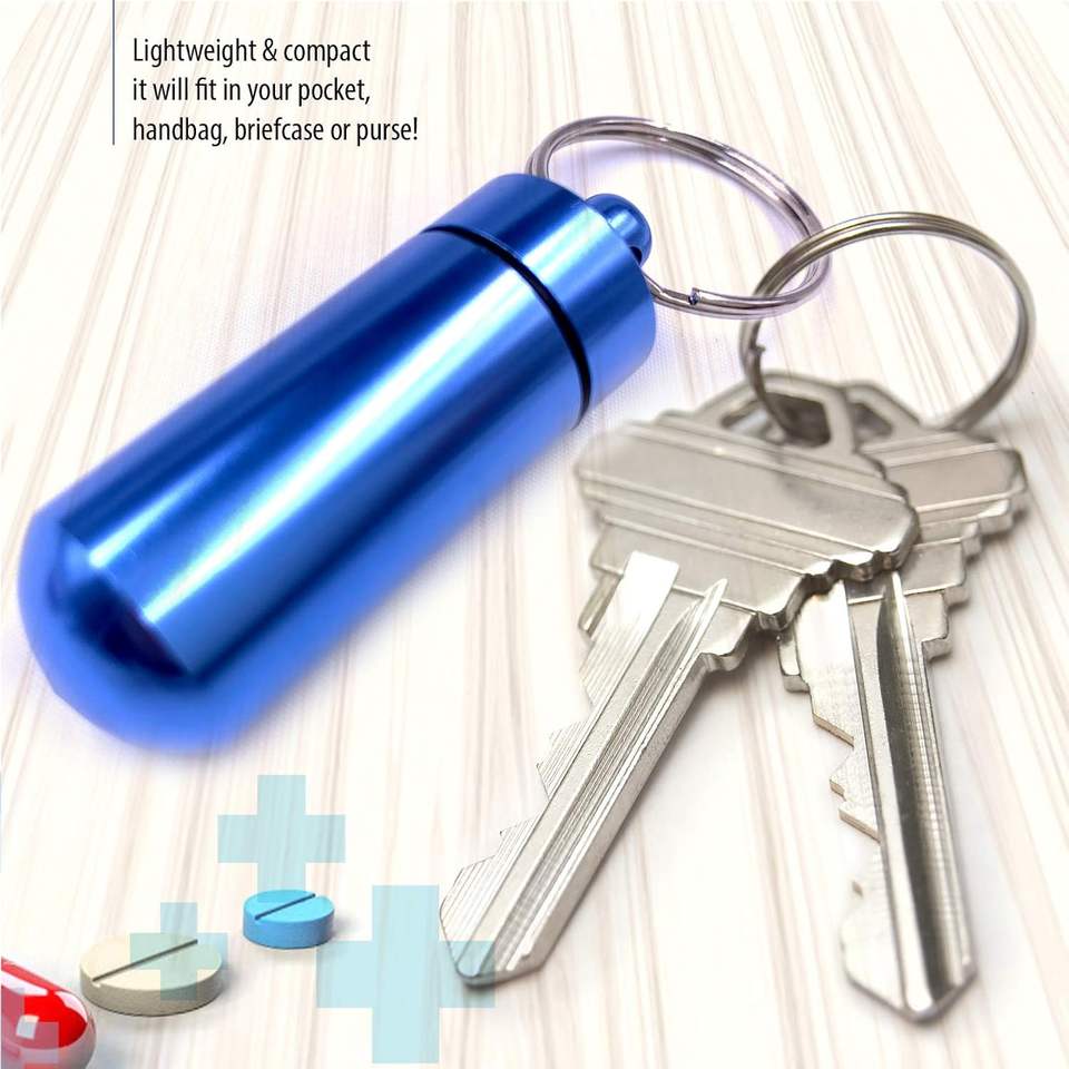 Porte-pilules porte-clés, étui à pilules en aluminium mini imperméable, conteneur de médicaments portable pour les voyages, organisateur de pilules de poche pour les vitamines