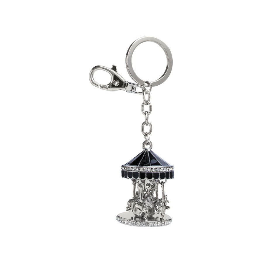 Porte-clés rond en argent avec strass, motif carrousel, pour sacs et clés