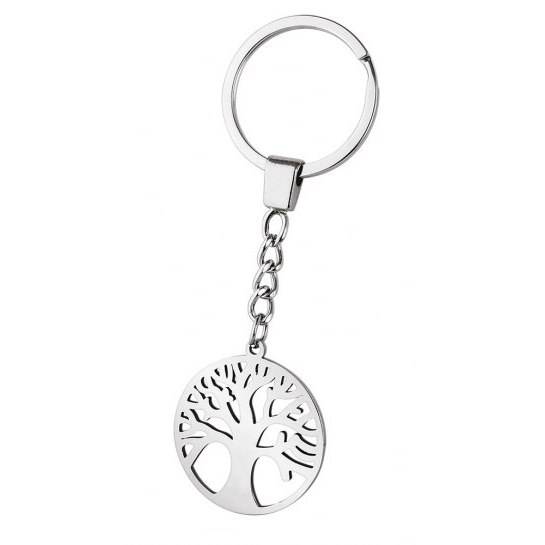 Porte-clés avec support pour pièces de monnaie et ouvre-bouteille en forme d'arbre en acier, en alliage et laiton, impression offset et UV disponible