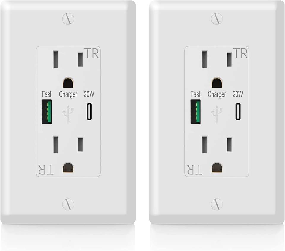 Prise murale USB Keygma QC18W et PD20W Prise USB à charge rapide avec courant max 15A certifié ETL fabriqué en ABS et PC
