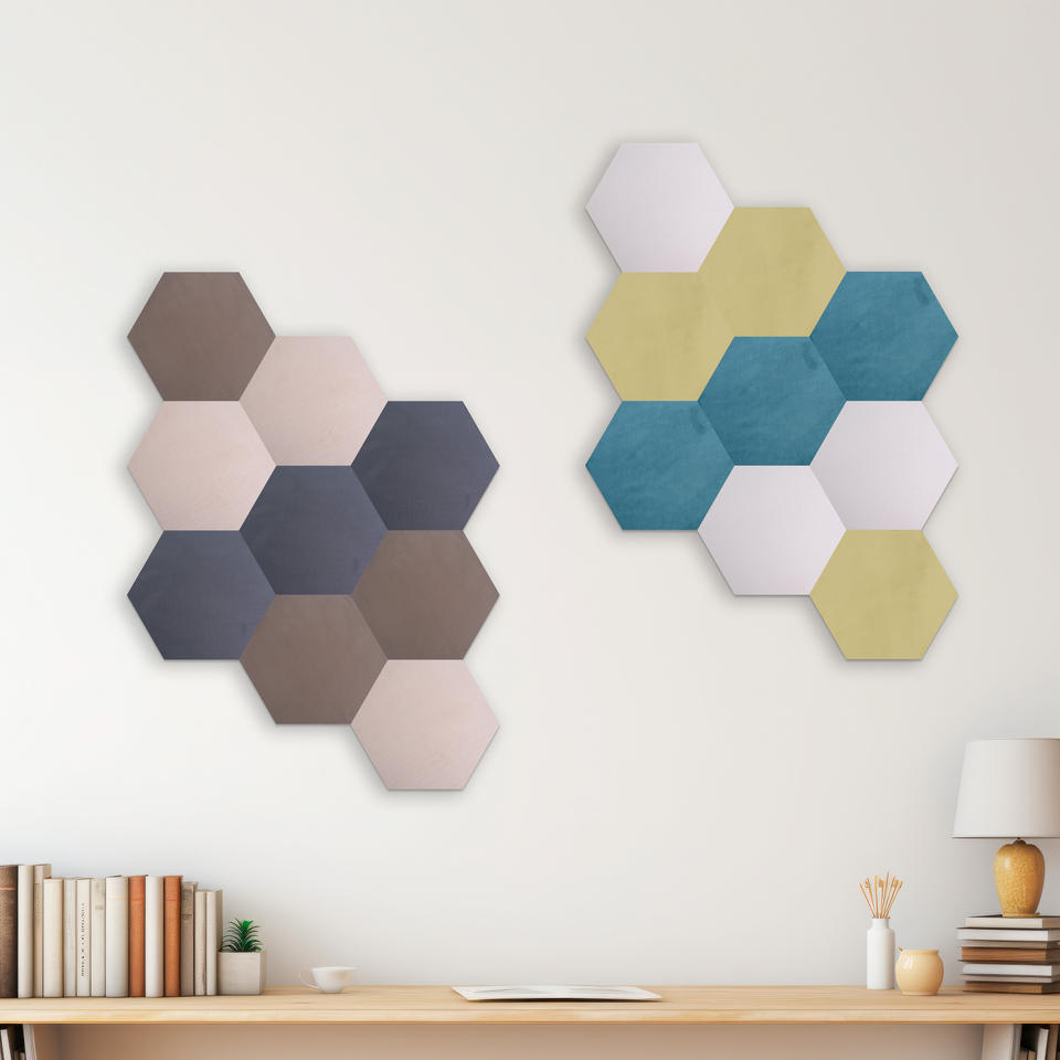 Panneaux acoustiques hexagonaux Keyhelm 100% fibre de polyester, design minimaliste pour l'absorption acoustique à domicile et au bureau, 0,5 NRC, Italie
