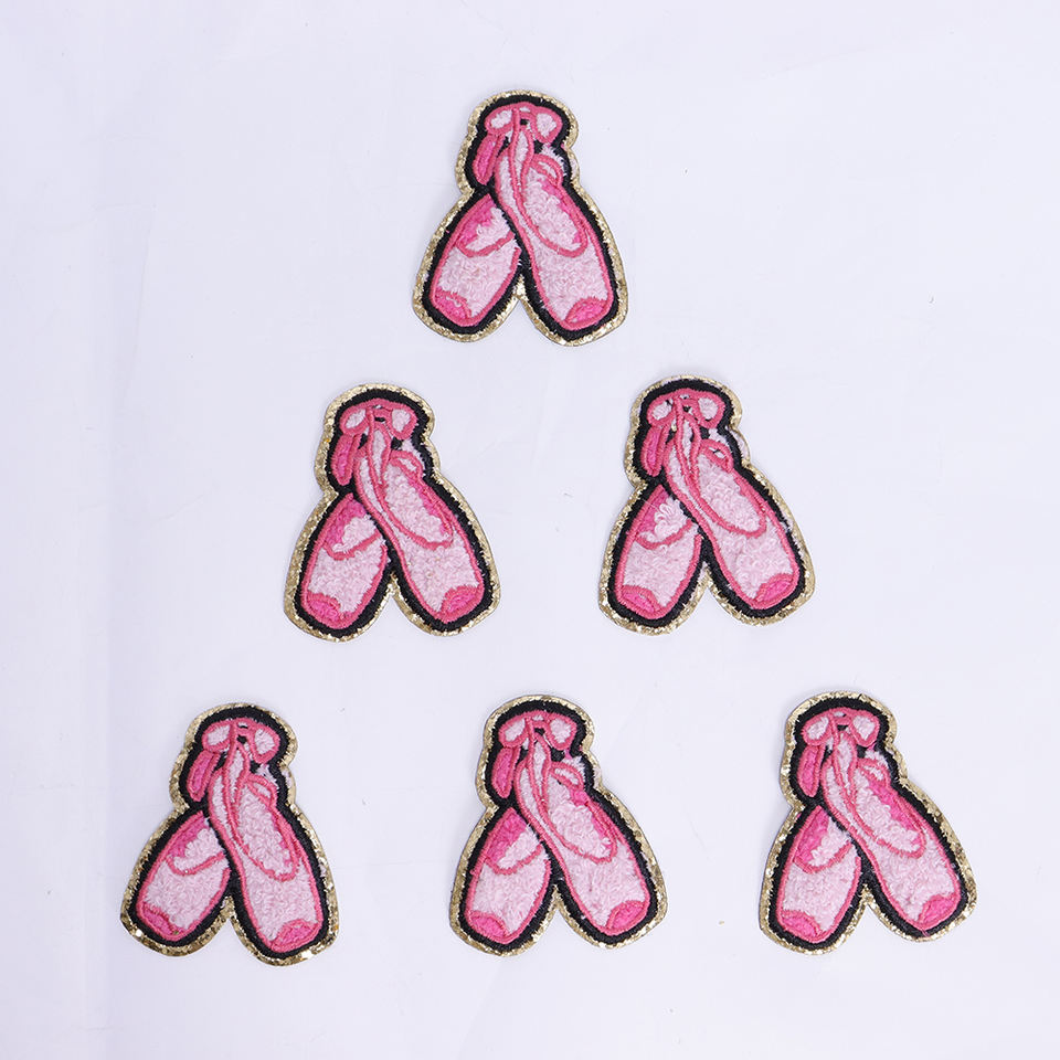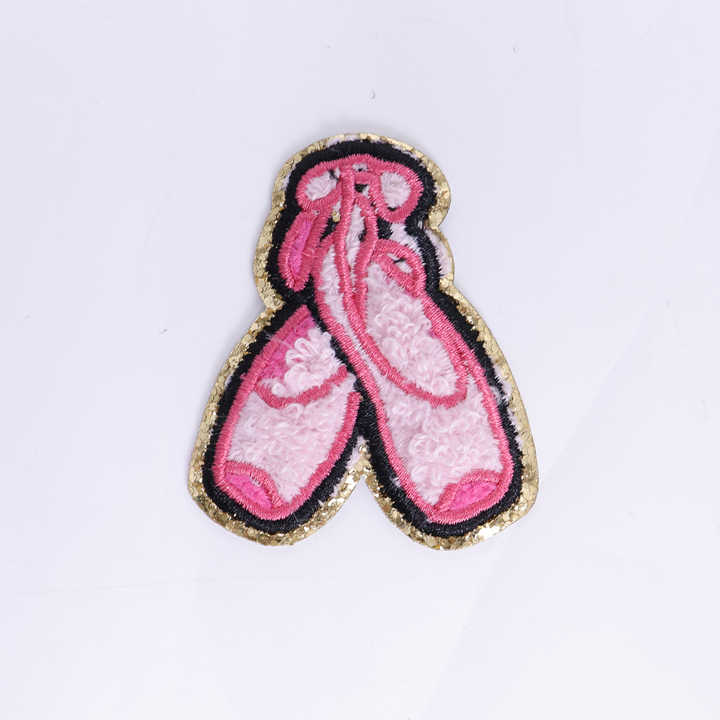 Keymay livraison rapide bricolage broderie personnalisé Chenille Patch autocollant auto-adhésif paillettes université Chenille Ballet pantoufles Patch