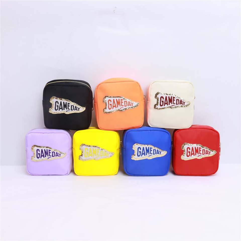 Keymy personnalisé bricolage jeu jour Patch sac cosmétique Nylon pochette à fermeture éclair femmes petit sac à main organisateur trousse de toilette maquillage sac de voyage