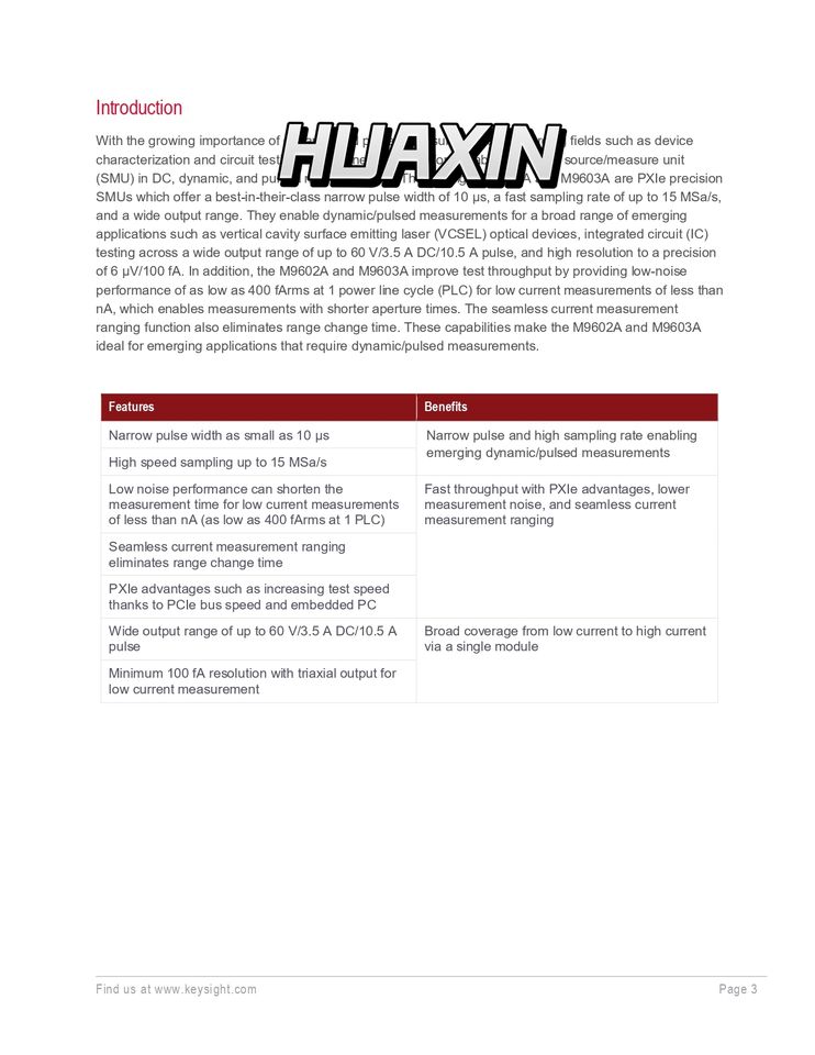 Unité source/mesure de précision Keysight M9603A PXIe, 100 FA, 15 MSas, 10 Us, 60 V/3.5A, DC/10.5a