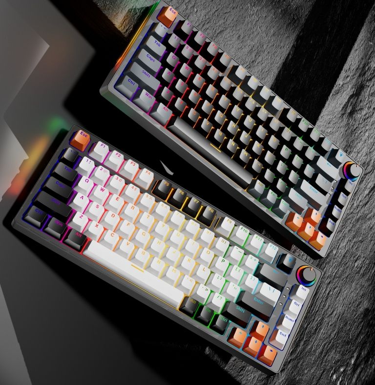 Keywin Nouveau Design Clavier Mécanique LED RVB Haut de Gamme Commutateur Personnalisé Clavier Mécanique de Jeu de Couleur Mixte Filaire à 82 Touches