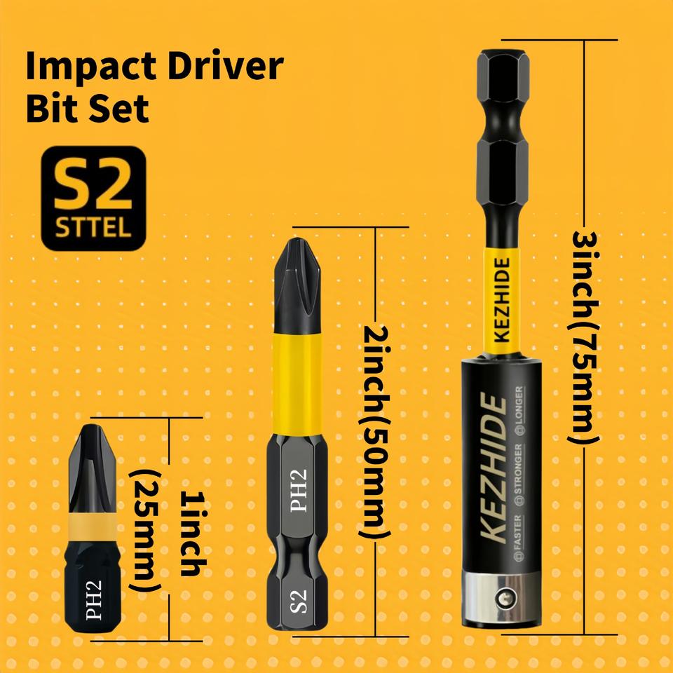 Kezhide Impact Driver Bit Set S2 Steel 1/4 In Phillips Torx Square Flathead 21 Pc Auto Repair Tool