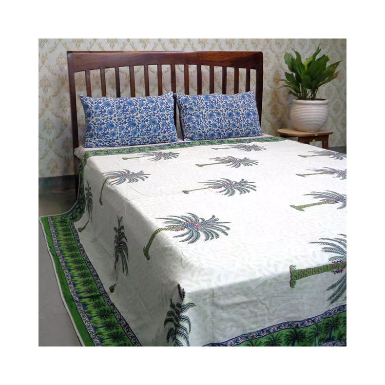 Nouvelle tendance Khajoor palmier vert main bloc imprimé coton reine taille Ac couvertures Dohar couette pour la vente en gros