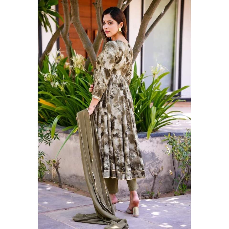 Khakhi Green Colour ANARKALI SUIT SET 3-PAIR CODE/ TD-109