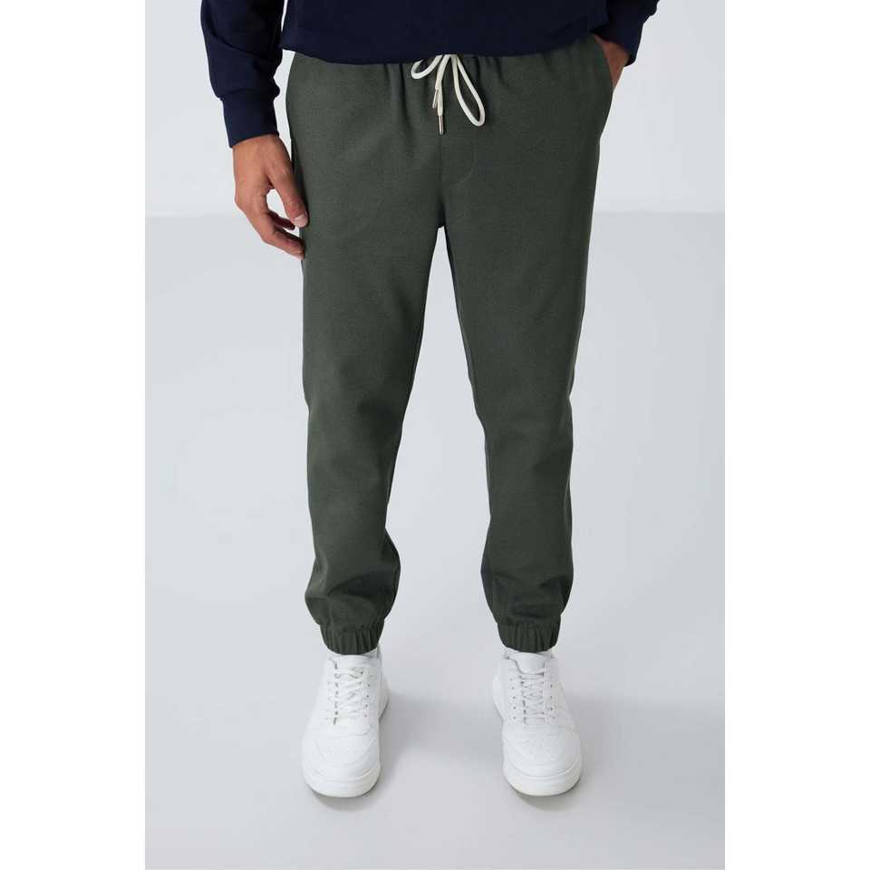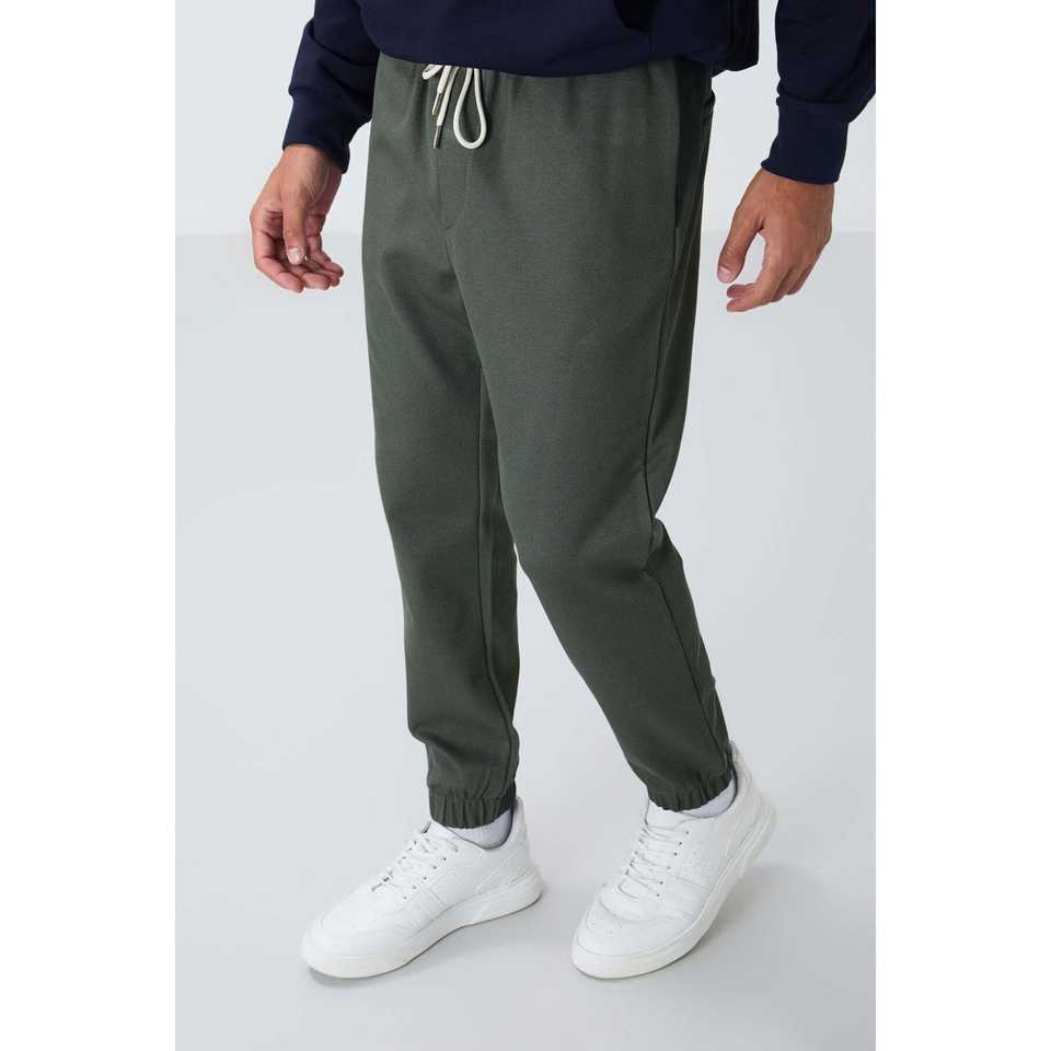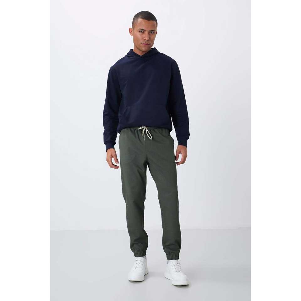 Pantalon de survêtement texturé kaki pour homme, taille élastique, décontracté, respirant, coupe standard