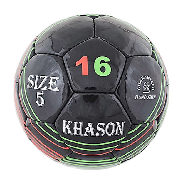 Ballon de football Khason à collage thermique avec logo personnalisé taille 5 utilisation pour entraînement/jeu PVC/PU noir football durable intérieur/extérieur