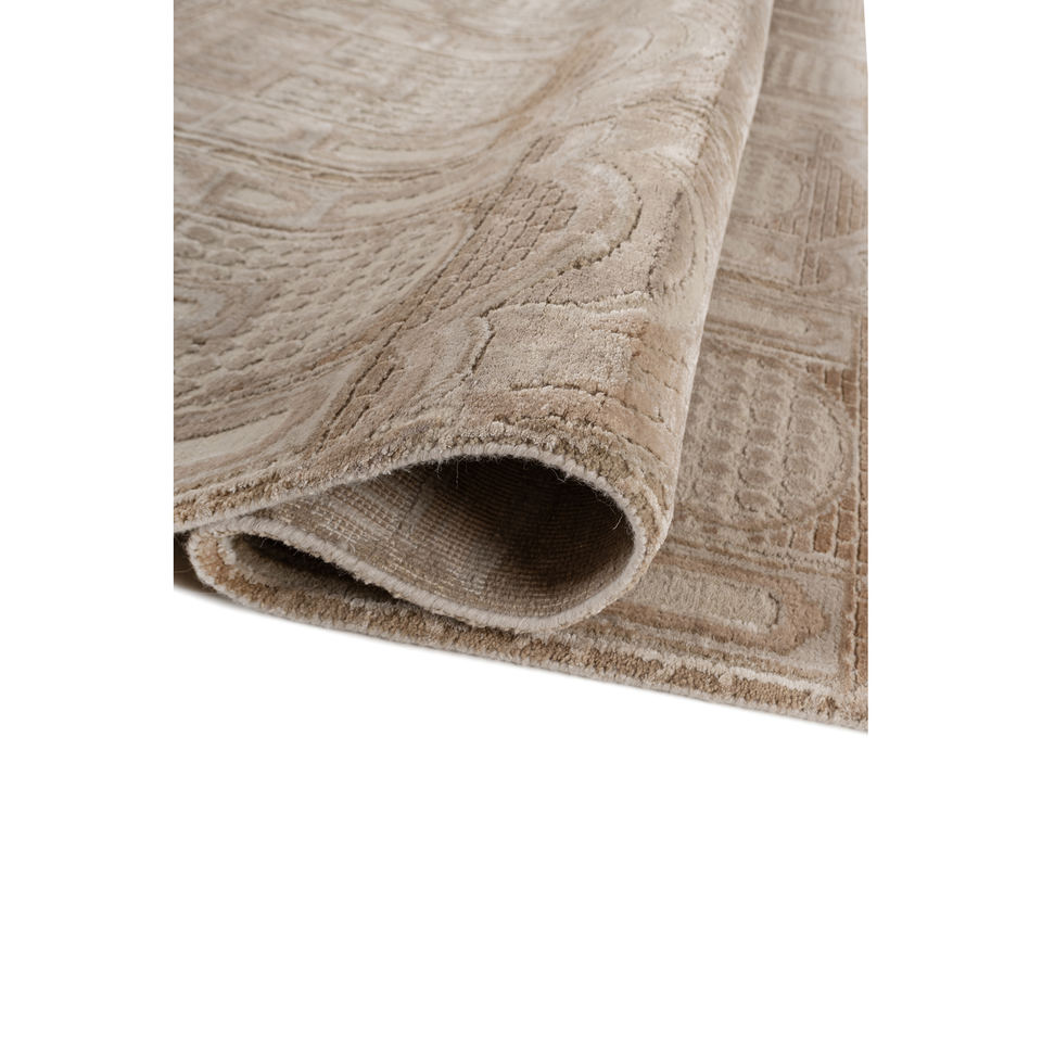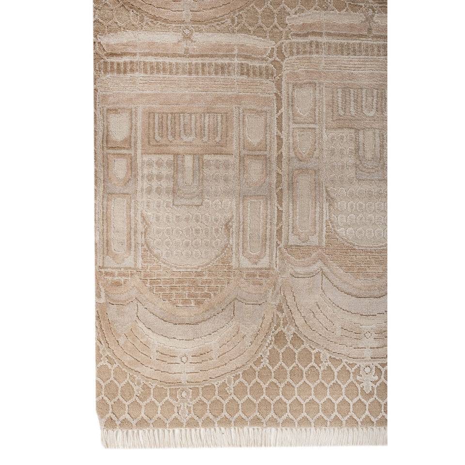 Tapis Khidki beige et marron à motifs géométriques, noués à la main en laine et soie de bambou, épaisseur 10 mm, pour la maison, le couloir, la chambre - LRB-1819