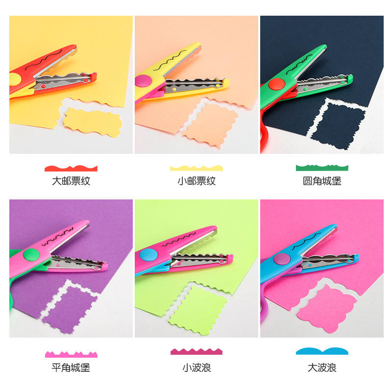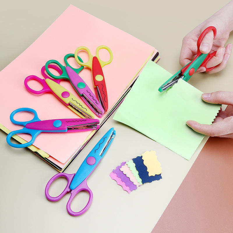 Ciseaux ondulés pour enfants, 13.2cm, pointe ronde pour la découpe du papier, fournitures artistiques pour étudiants, ensemble coloré avec boîte de rangement