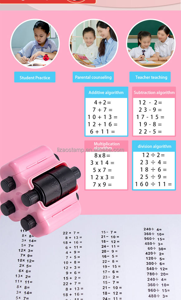 Timbre jouet pour enfant Quatre en un Addition Soustraction à moins de 1000 élèves Math Practice Questions Digital Roller Stamp