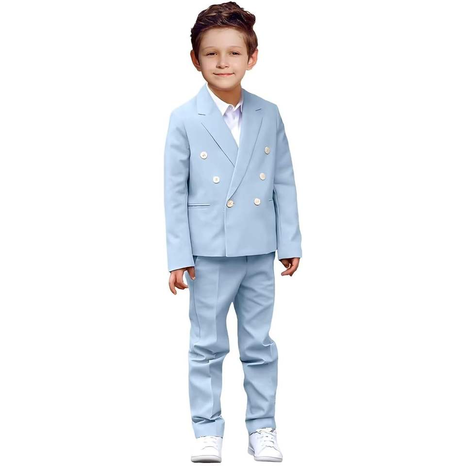 Enfants 2 Pièces Formel Slim Fit Tuxedo Costume Ensemble Double Boutonnage Blazer Pantalon pour Mariages Proms Anniversaires-Couleur Bleu Ciel
