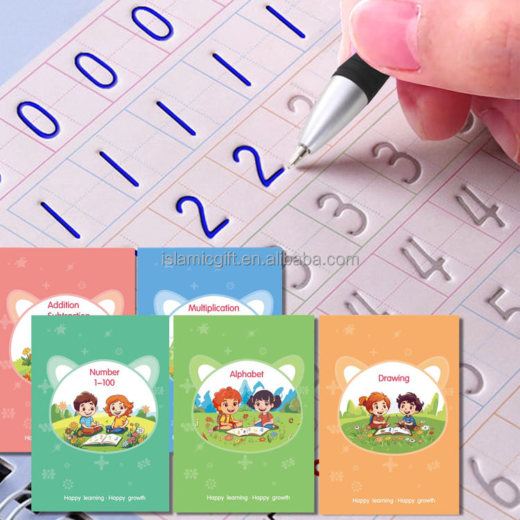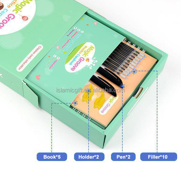 Enfants de 3 ans réutilisable rainuré écriture calligraphie traçage lettres écriture magique pratique cahier avec stylos