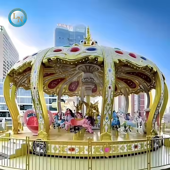 Manèges de parc d'attractions pour enfants Carrousel commercial à couronne en fibre de verre et en métal de 52 sièges pour une utilisation extérieure/intérieure dans un centre commercial