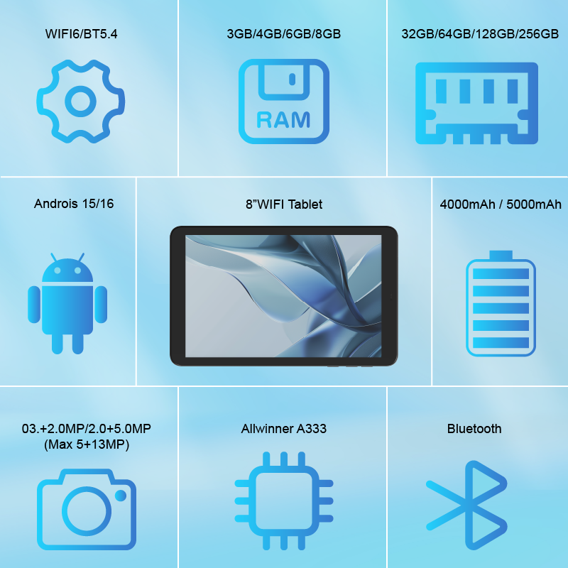 Tablette Android pour enfants 8 pouces Écran HD IPS Quad Core Tablette pour enfants pour l'apprentissage en ligne et le divertissement
