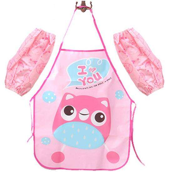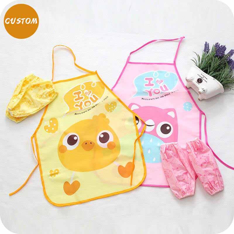 Kids Apron Set with Sleeve Cover Girls Boys Aprons for Cooking Baking Painting Gardening Apron Waterproof Children Pinafore