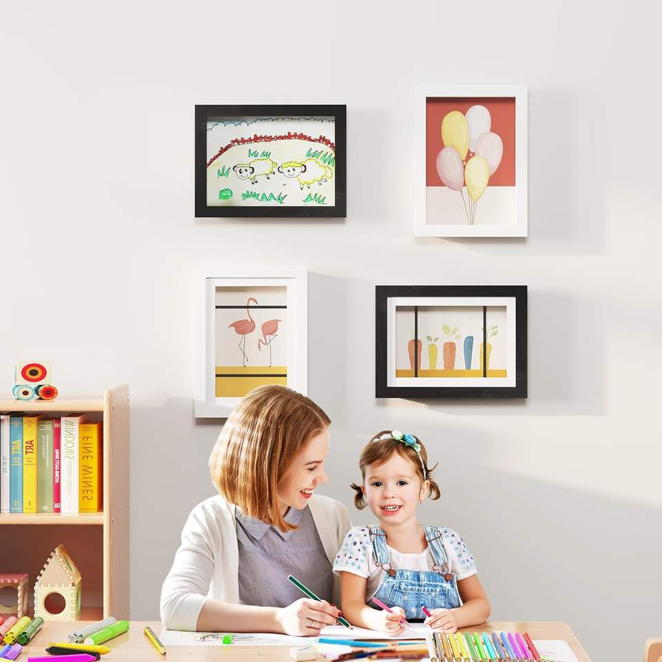 Cadre photo pour œuvres d'art d'enfants, MDF noir, impression UV, pliable, montage mural moderne, verre résistant aux chocs, rangement