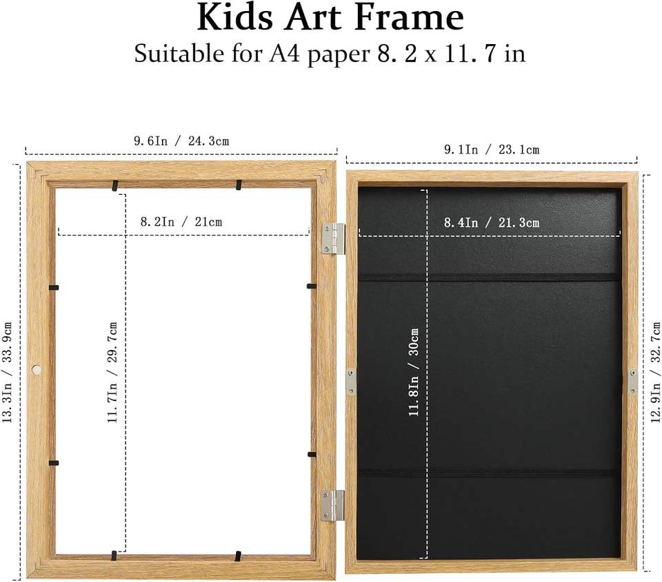 Cadre photo pour œuvres d'art d'enfants, interchangeable, en bois noir, rose, bleu, avec verre incassable, cadre pour œuvres d'art d'enfants