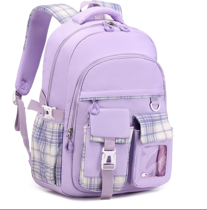 Sac à dos scolaire pour filles et adolescents Poches fonctionnelles Matériau Oxford Fermeture à glissière résistante à l'eau pour l'école primaire et primaire
