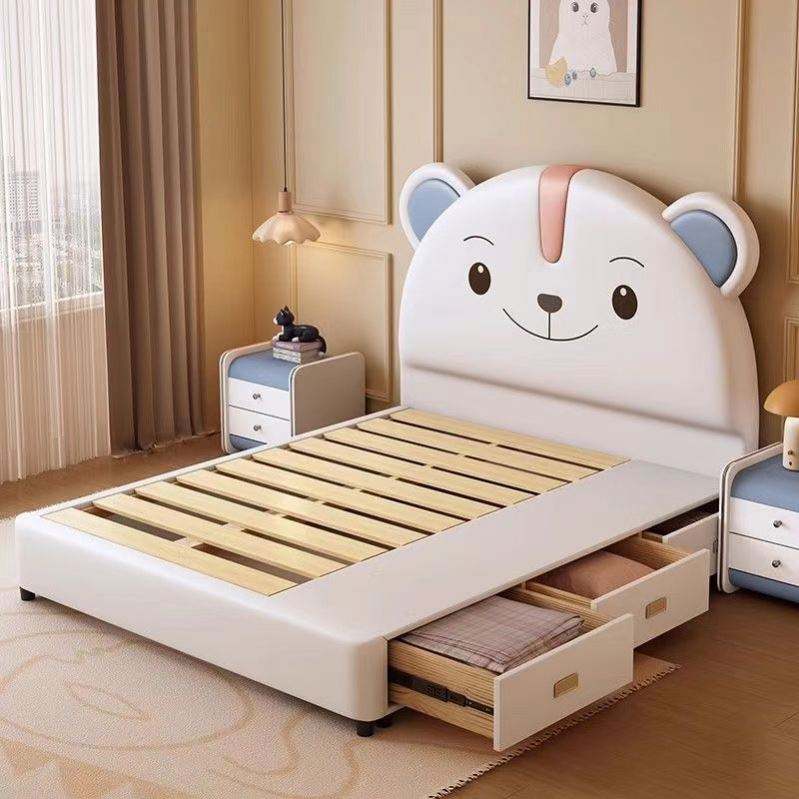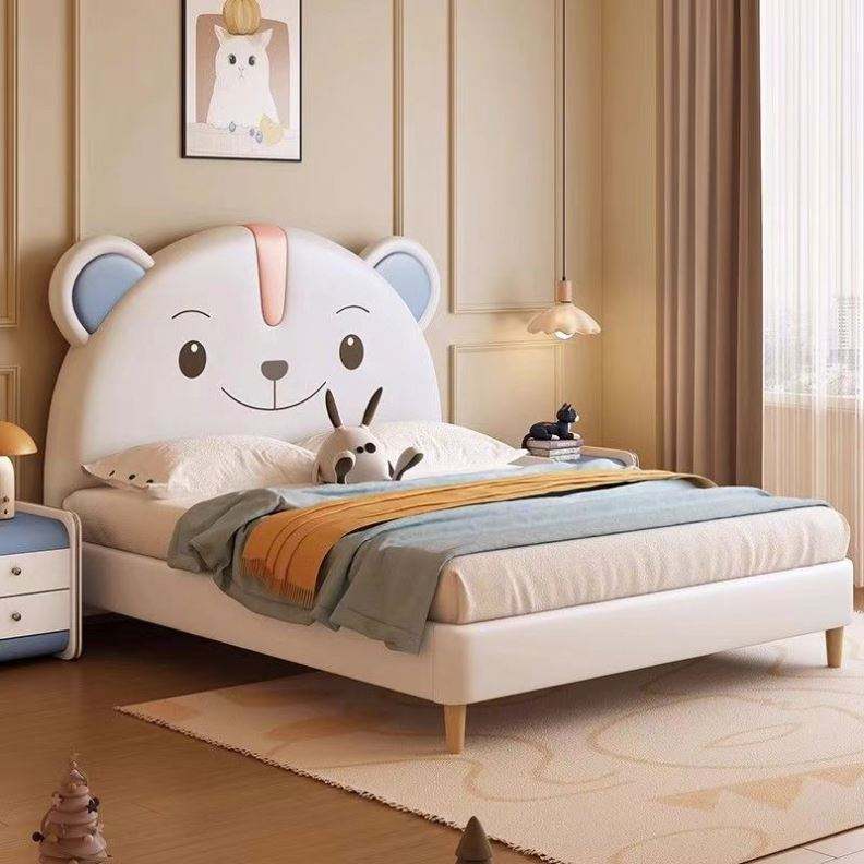 Kids Bear Themed Wooden Bed Modern Simple Design Soft Upholstered Single Double Bed