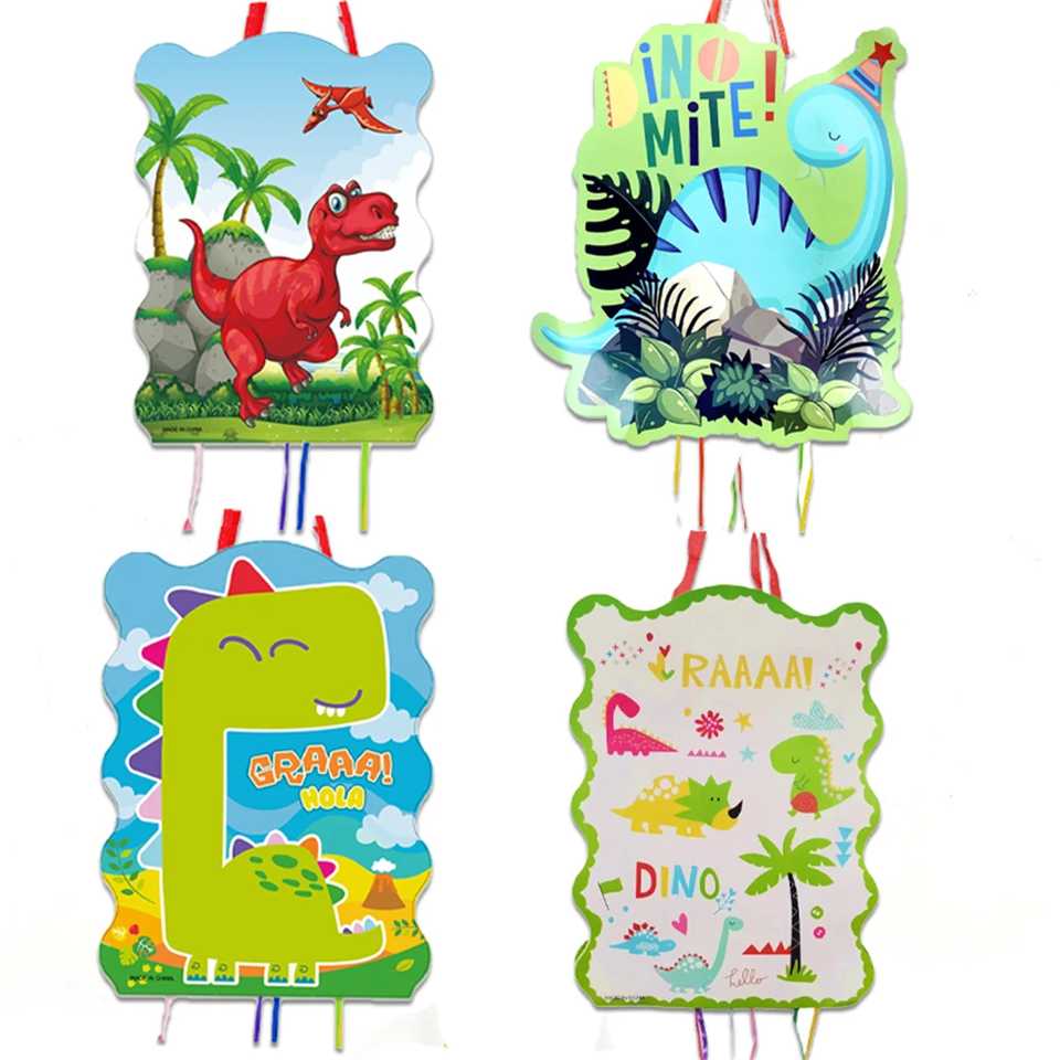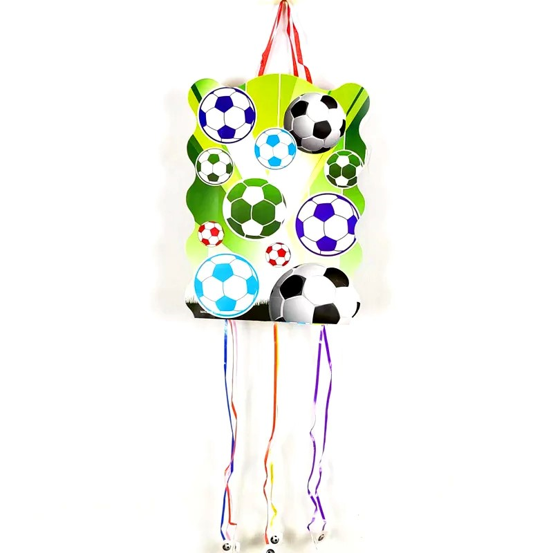 Accessoires de fête d'anniversaire pour enfants : Piñata à suspendre avec 6 cordes de tirage, petits jouets à insérer, sac de rangement, thèmes Dinosaure et Football, Fournitures de fête