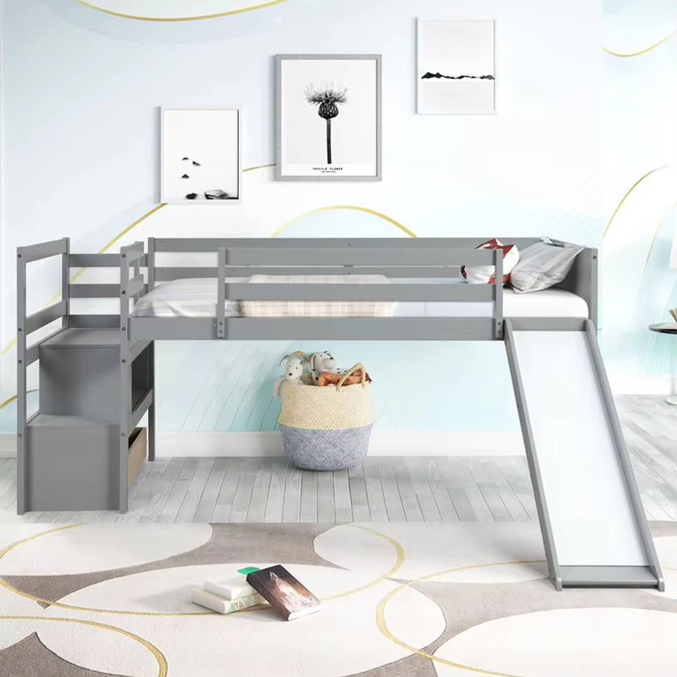Lit superposé avec toboggan pour enfants, lit superposé en bois pour enfants, lit Montessori pour enfants