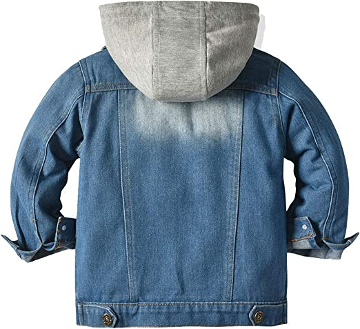 Kids Vintage Formal Streetwear Denim Hoodies Winter Coat Button Embroidery Casual Hooded Jacket Unisex Patchwork Striped Print