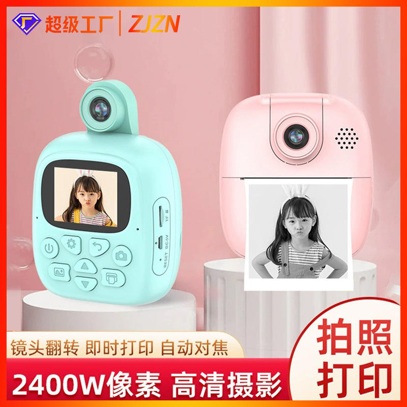 Appareil photo numérique pour enfants, écran 2,0 pouces, double objectif, rose, impression instantanée