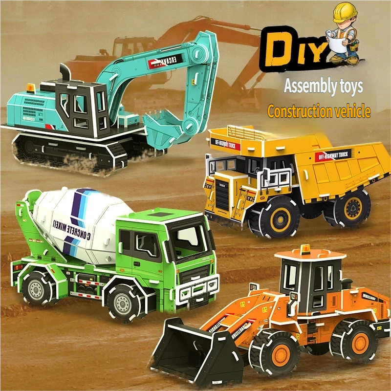 Puzzle 3D éducatif pour enfants sur les véhicules d'ingénierie, blocs de construction en papier, jouet d'assemblage DIY pour enfants