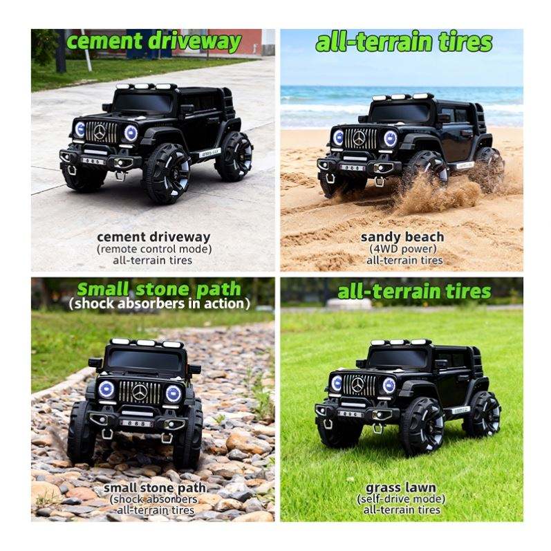 Voiture électrique pour enfants, double motorisation 390, phares LED, batterie 12V7Ah, direction, lecteur MP3, grande cabine, pour les 3-12 ans