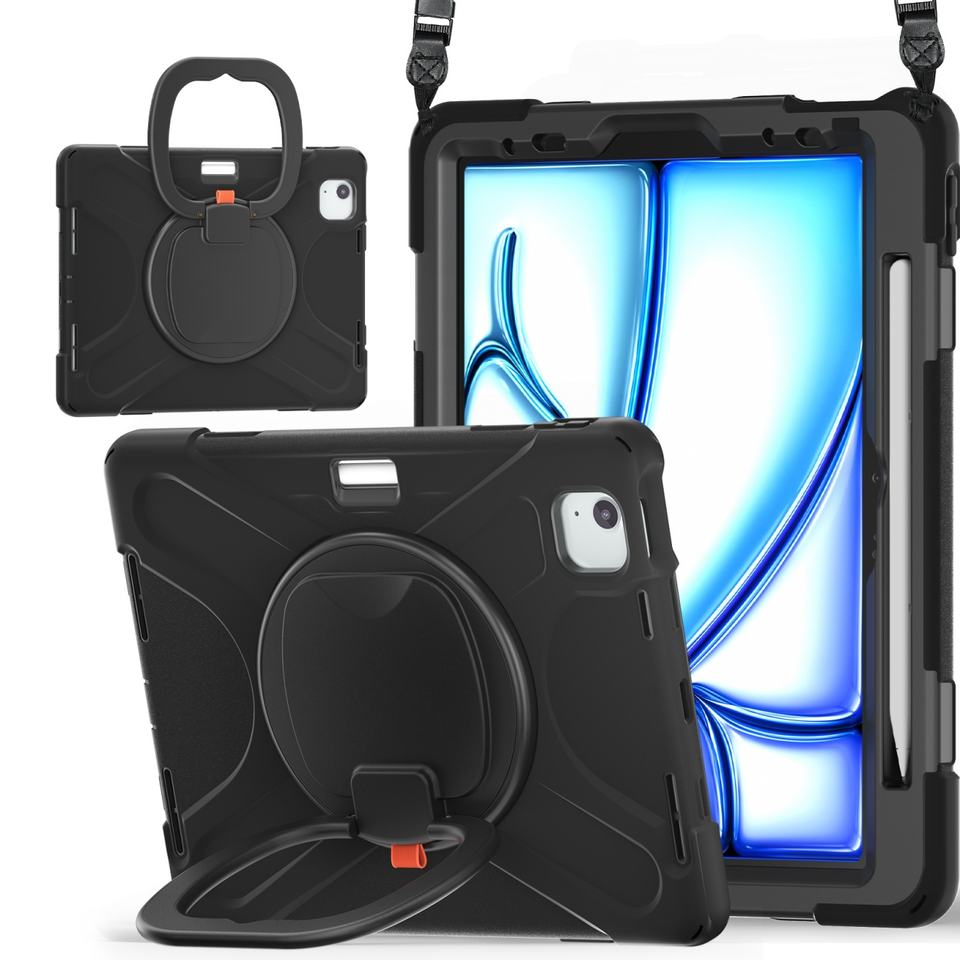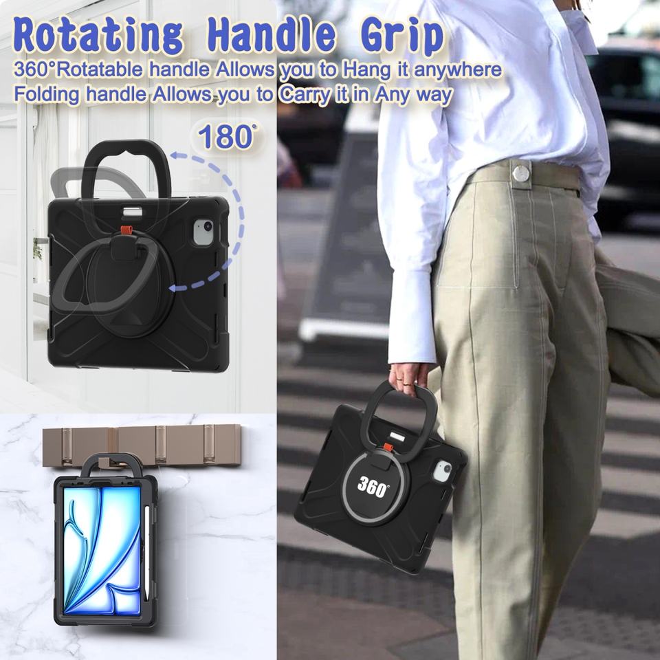 Coques de tablette en silicone pour enfants avec poignée, compatibles iPad Air 2024 M2 11 et 13 pouces, robustes avec béquille 360°