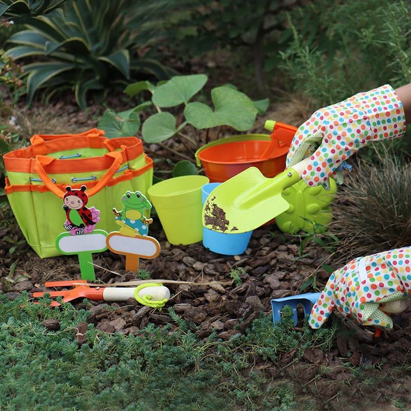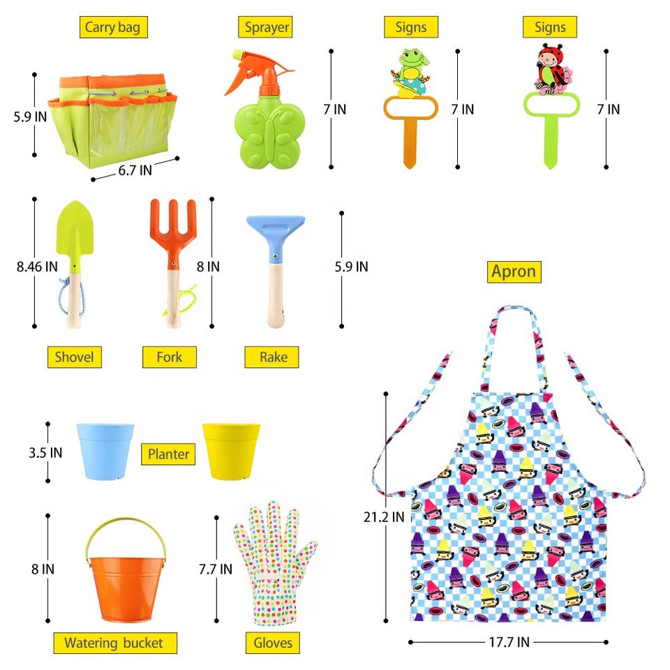 Ensemble d'outils de jardin pour enfants, kit d'outils à main et d'équipement de plein air avec gants de tablier, pelle à fourchette, râteau, jouet de jardinage pour les petits