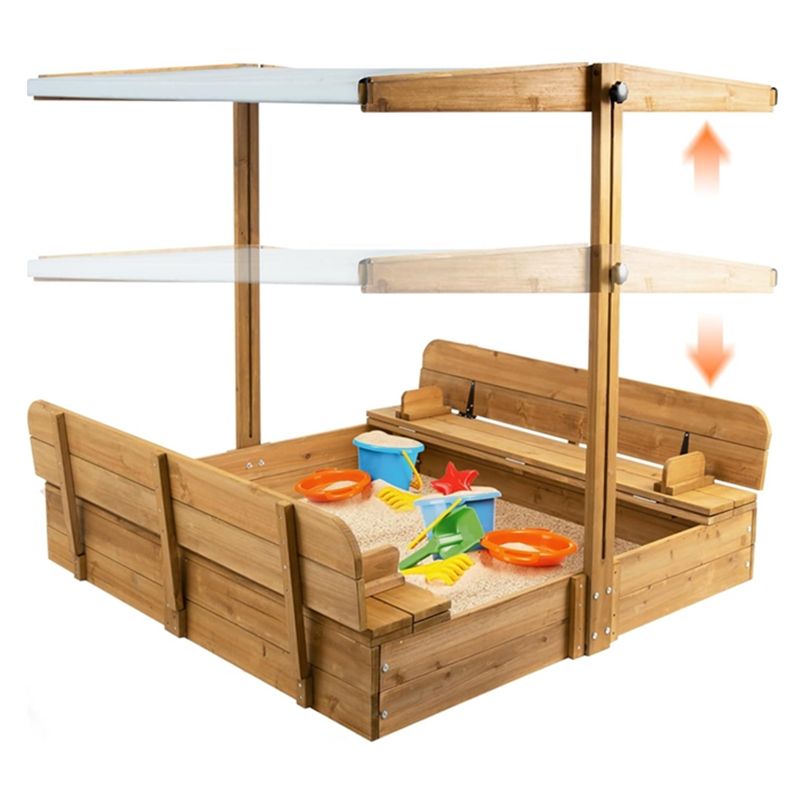 Cadeau pour enfants Bacs à sable d'extérieur avec couvercle résistant aux UV et toit à hauteur réglable Bac à sable en bois avec couvercle