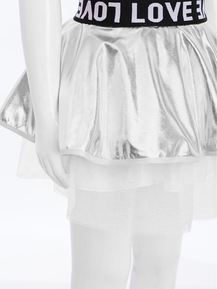 Costume de danse hip-hop jazz pour filles, ensemble veste et jupe tutu métallique pour spectacle sur scène, fête, danse de rue et cheerleading