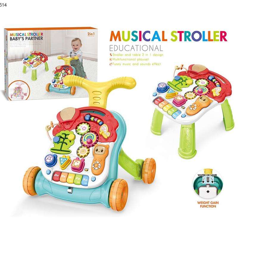 Poussettes d'activités chaudes pour enfants trotteur multifonction, vente en gros de jouets à vendre 5 en 1 marcheur table d'apprentissage du piano pour bébé