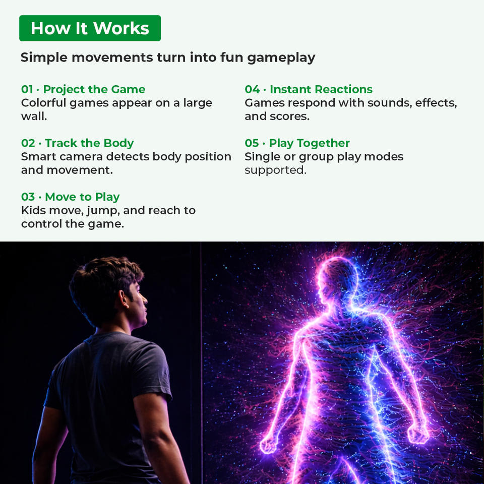 Système de jeu interactif de suivi des mouvements de particules quantiques pour les enfants, pour le divertissement en aire de jeux intérieure – INEK00035