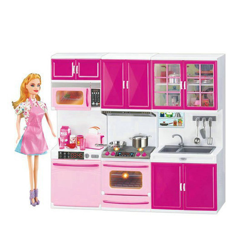 Meubles de poupée en plastique avec musique et lumière, jouet de cuisine pour enfants, ensemble de jeu d'extérieur