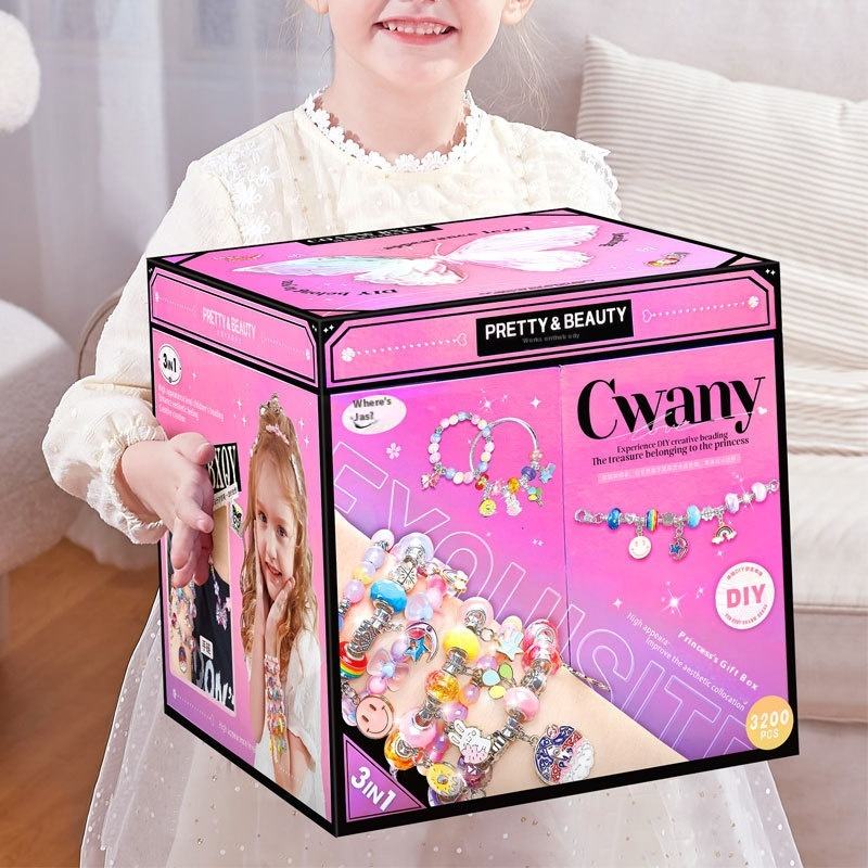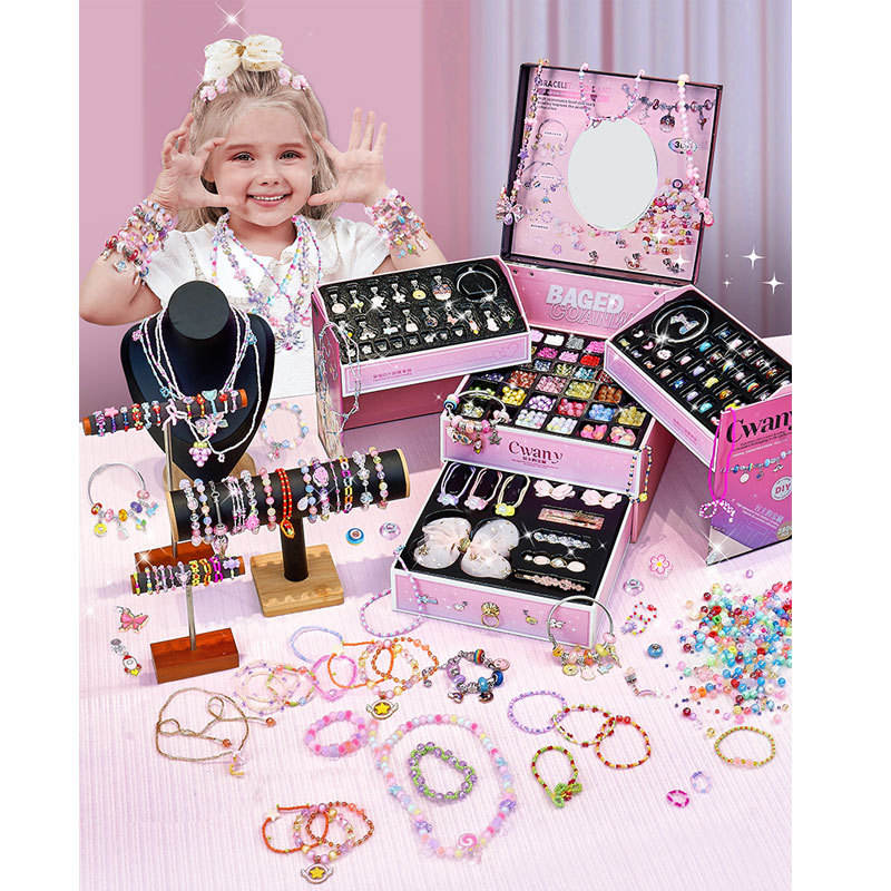 Kit de maquillage pour enfants Yasni, ensemble de bijoux en perles DIY fait main, bracelet et collier en plastique créatif pour filles, cadeau de créateur pour enfants
