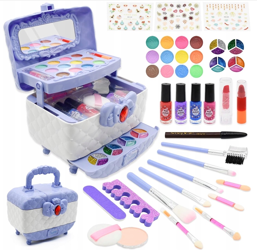 Kits de maquillage pour filles - Trousse de maquillage en plastique ABS avec cosmétiques et outils pour les ongles, boîte de jeu de rôle et de créativité pour les enfants de 3 ans et plus