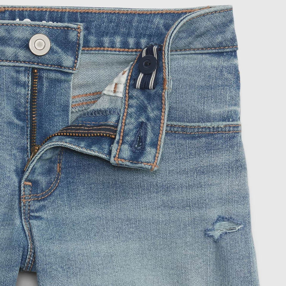 Shorts en jean mi-longs pour enfants, en coton extensible, bouton au centre de l'avant, style classique à 5 poches