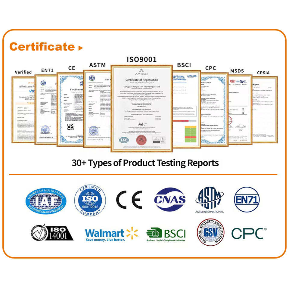Certificat ::EN71, 10P, ASTM, EN60825, EN62115, HR4040, CE