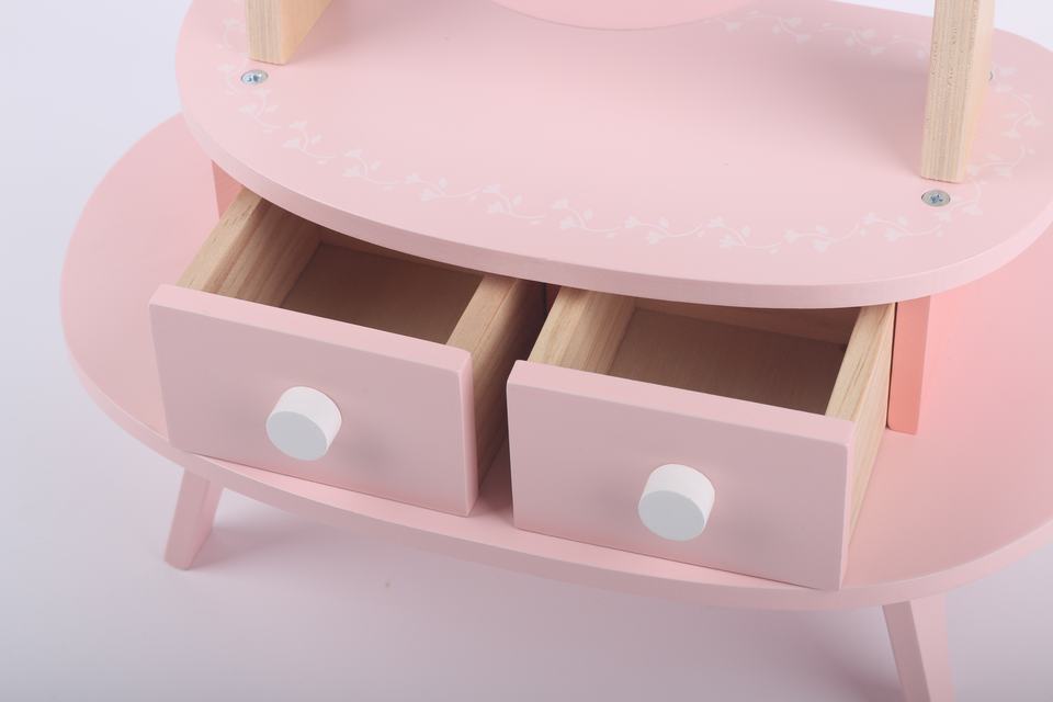 Table de toilette en bois rose multifonction pour enfants, kit de maquillage pour filles
