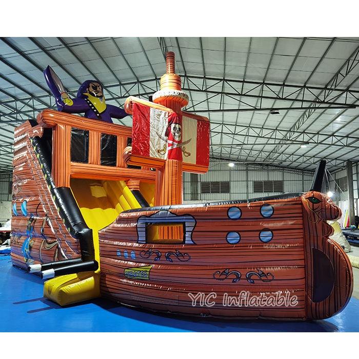 Grand bateau pirate gonflable multi-jeux pour enfants avec obstacles et toboggan pour la location de fêtes et d'événements en plein air
