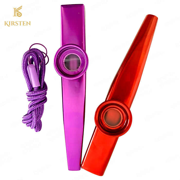 Instruments de musique de fête pour enfants Instrument à vent de flûte Petit outil de musique Kazoo coloré en métal avec lanière