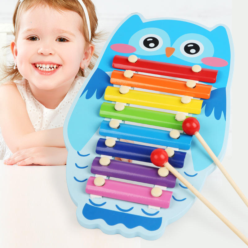 Enfants percussion 8 notes Xylophone Beat Toys gros arc-en-ciel textile tambour Hand-Knock Piano jouet en bois Animal Xylophone