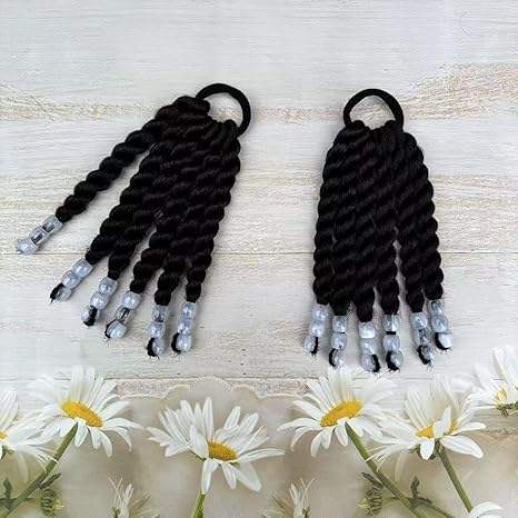 Queue de cheval pour enfants avec perles, 6 pouces, tresses torsadées à deux brins, queues de cheval tressées pour enfants avec perles, coiffures tressées protectrices