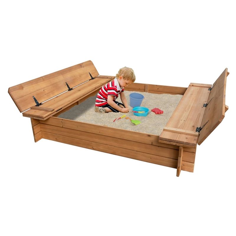Kids Sand Boxes with Lid Sand Pit with Cover for Outdoor Backyard Patio 48 Inch Wood Sandbox with 2 Bench Seats
